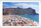 Smilšaina pludmale 200 m. pāri ceļam caur pazemes pāreju. Dvieļi, saulessargi, atpūtas krēsli – bez maksas, matrači – par maksu.