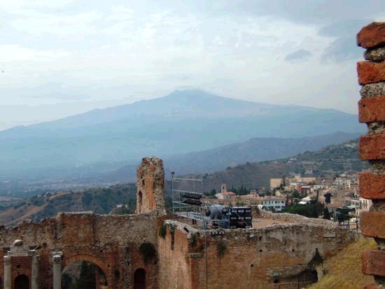 Vecpilsētā atrodas grieķu teātra (Teatro greco) drupas. Patiesībā tas ir nevis grieķu, bet gan romiešu teātris, kas grieķu teātra vietā uzcelts II gs. p. m. ē. Teātra diametrs ir 109 metri. Tas ir otrais lielākais teātris Sicīlijā ar visskaistāko dekorāciju – no teātra tribīnēm paveras skats uz vulkānu Etna. Mūsdienās teātrī rīko operas un dramatiskā teātra uzvedumus, koncertus.
