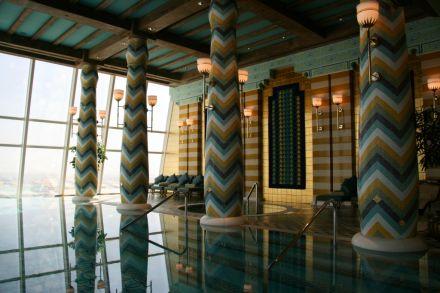 Grezna un mūsdienīga viesnīca. Tiek uzskatīta par prestižāko viesnīcu pasaulē. Buras formas korpuss: 202 suite veida numuri. 5 restorāni (arābu, jūras velšu, starptautiskā un 2 Vidusjūras virtuves). 3 bāri, konferenču zāles, veikali. Baseins (ūdens temperatūru regulē atkarībā no laika apstākļiem). Atpūtas krēsli, saulessargi un dvieļi pie baseina un pludmalē bez maksas.