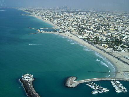 Džumeira – Dubaija. Uz mākslīgas salas, apmēram 400 m līdz blakus pludmalei, apmēram 25 km līdz Dubaijas centram un apmēram 30 km līdz Dubaijas lidostai.