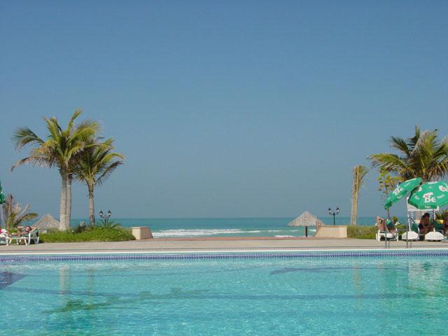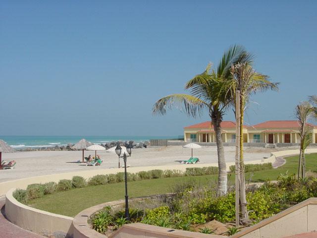 Umelkaivaina. Jūras krastā, blakus pludmalei, apmēram 2 km līdz pilsētas centram un apmēram 45 km līdz Dubaijas lidostai.