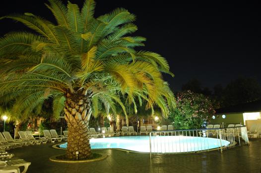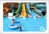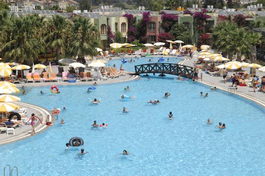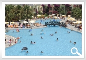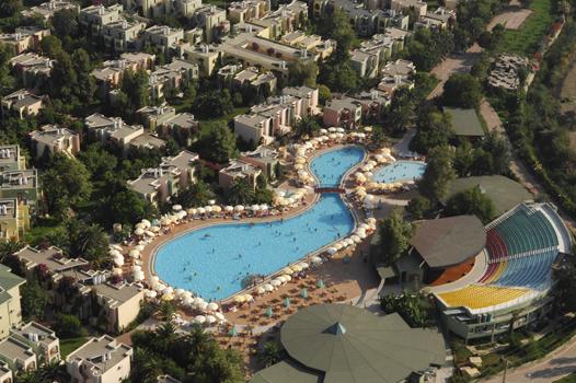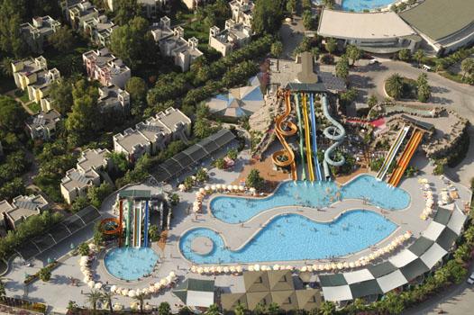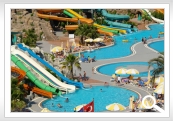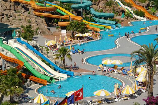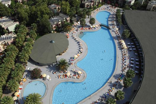amfiteātris. 3 baseini ar 11 ūdens slīdkalniņiem, četri no kuriem bērnu. Atpūtas krēsli, saulessargi, matrači un pludmales dvieļi pie baseina un pludmalē par brīvu.