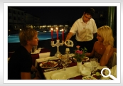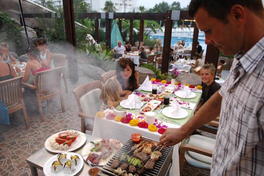 kafijas/tējas brīži, vēlās vakariņas vai nakts maltīte, īpaša ēdienkarte bērniem, lejami vietējā ražojuma un importa alkoholiskie un atspirdzinošie dzērieni.