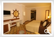 - 4 divistabu deluxe suite (2 guļamistabas ar durvīm, džakuzi tonētā stiklotā balkonā vai vannasistabā; halāti, vip set up, vip a la carte brokastis, vip-sauna, turn down serviss, katru dienu gludināšanas pakalpojumi, ātrais check in un check out; maks. 3 cilv., 74-80 m2, skats uz jūru, atrodas 1. un 2. stāvā);