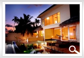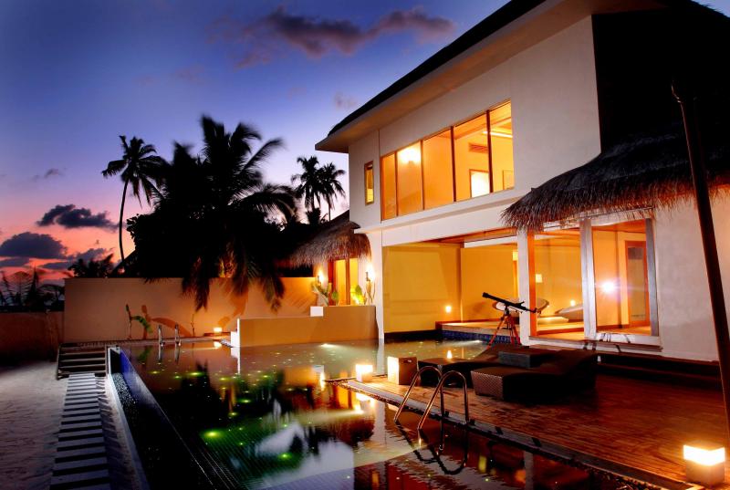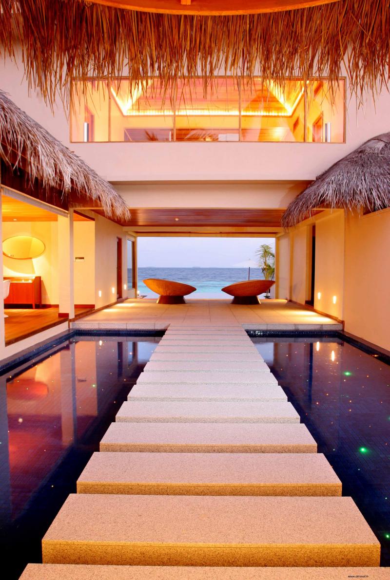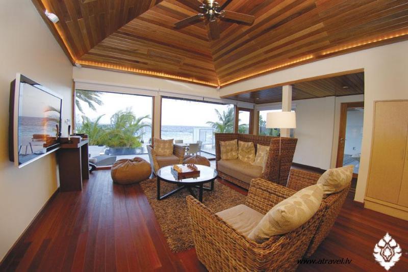 Lielisks pludmales paviljons ( 800 m2 ) ar nelielu baseinu un individualu pludmali. Paviljons izpildīts avangarda stilā, master guļamistaba augšējā stāva ar skatu uz baseinu un lieliski pāredzamu lagūnu. Ārpusē izvietota oāze ar atvērto dušas zonu un skaistu tropu dārzu. Otrai guļamistabai ir sava iekšējā/ārēja vanna ar dušu un atsevišķu teritoriju ārpusē. Ēdamistaba ar skatu uz dārzu. Baseins ar apgaismošanu, sterio sistēma, SatTv, DVD, izmalcināts interjērs. Personīgais batlera serviss 24 st. Lieliska atpūta Maldīvās