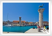 Nostāsti vēsta, ka Rodos ostā atradusies 32-40 m augstā Saules Dieva Hēlija statuja jeb Rodos Koloss, kura bronzā veidotās kājas bija novietotas katrā Roda ostas mola pusē. Tas bija viens no Septiņiem pasaules brīnumiem, kas diemžēl gājis bojā zemestrīces laikā 227. gadā p.m.ē.