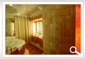 Семейные номера (около 80 м²) - 2-этажный номер. На первом этаже гостиная с кухонной нишей и раскладным диваном, душ, телевизор, балкон; на втором этаже спальня с двухместной кроватью, ванна и душ, телевизор, оборудование стандартного номера. Номера этого типа находятся в главном здании.