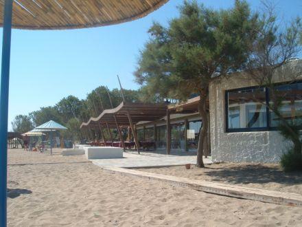 Зонтики, лежаки, бар.